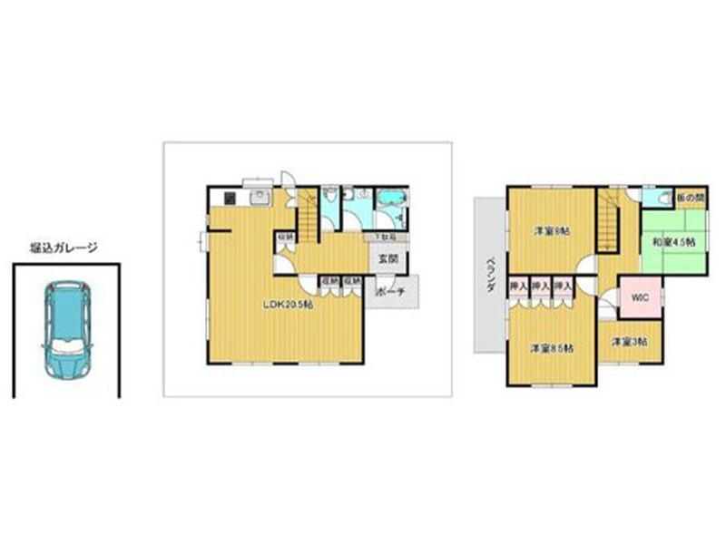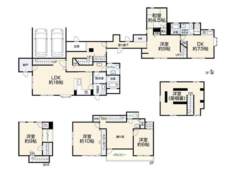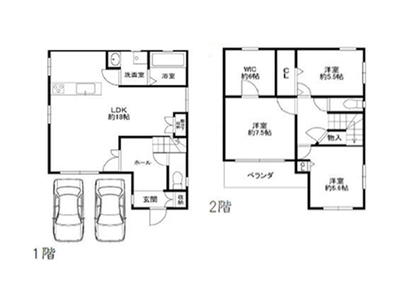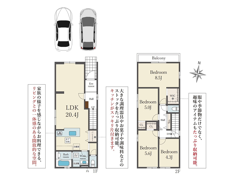 土地56.6坪・4LDK,约20贴的客厅・全居室6贴以上格局,并列停车2台