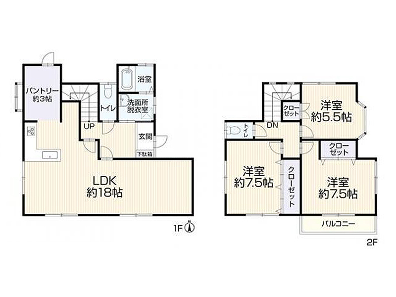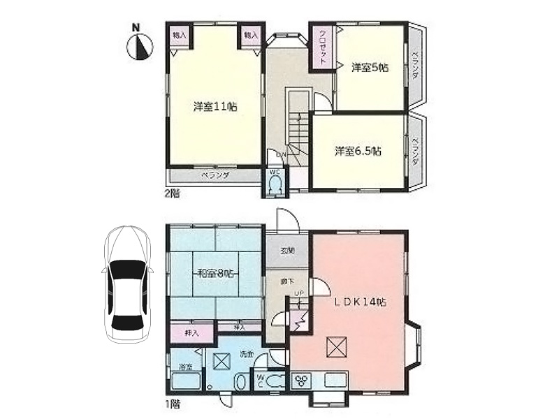 知名企业施工轻量钢架造2层建,5LDK・全室朝南向,日照・通风良好