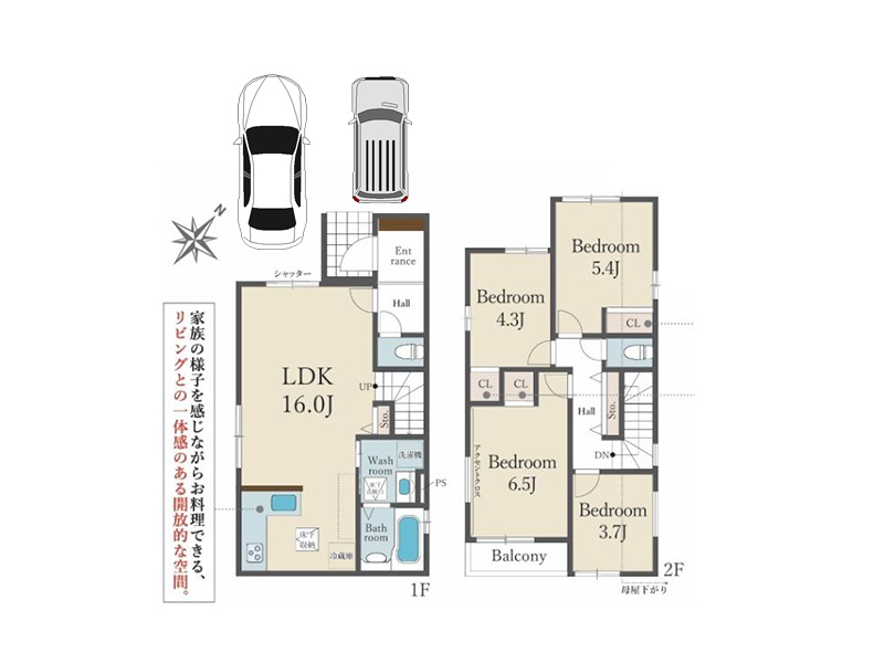 东南向・日照良好・娴静的住宅地,20.5贴宽敞客厅・室内车库