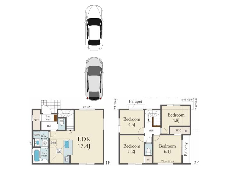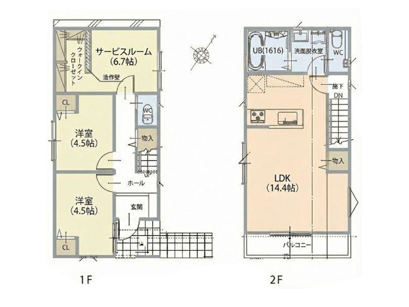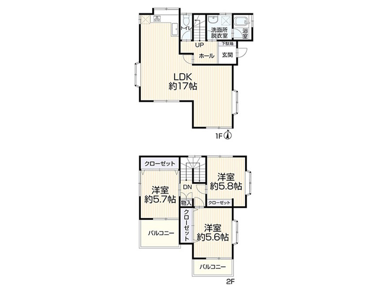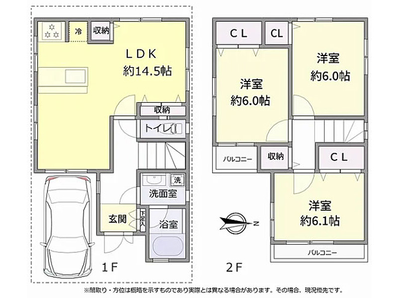 知名企业施工轻量钢架造2层建,5LDK・全室朝南向,日照・通风良好