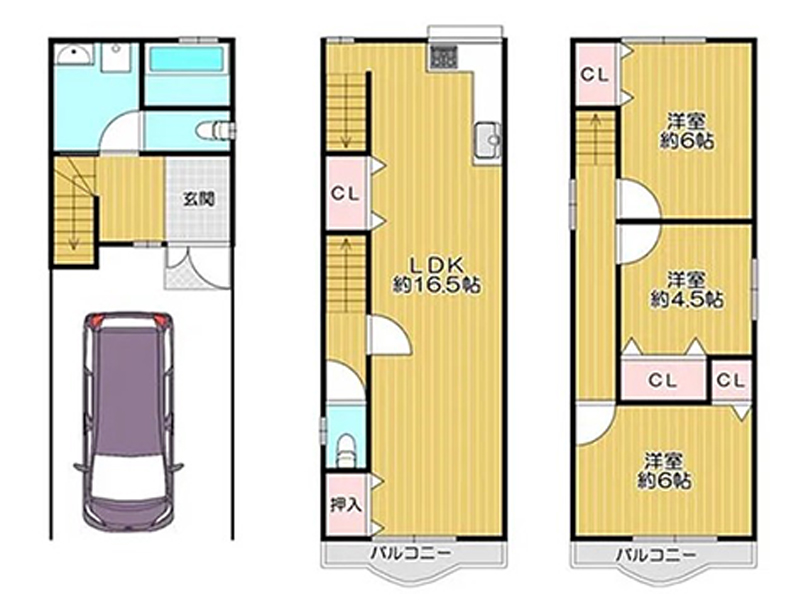 平成8年建筑木造3层户建・4LDK,车站步行7分・超市步行3分・小学校步行2分