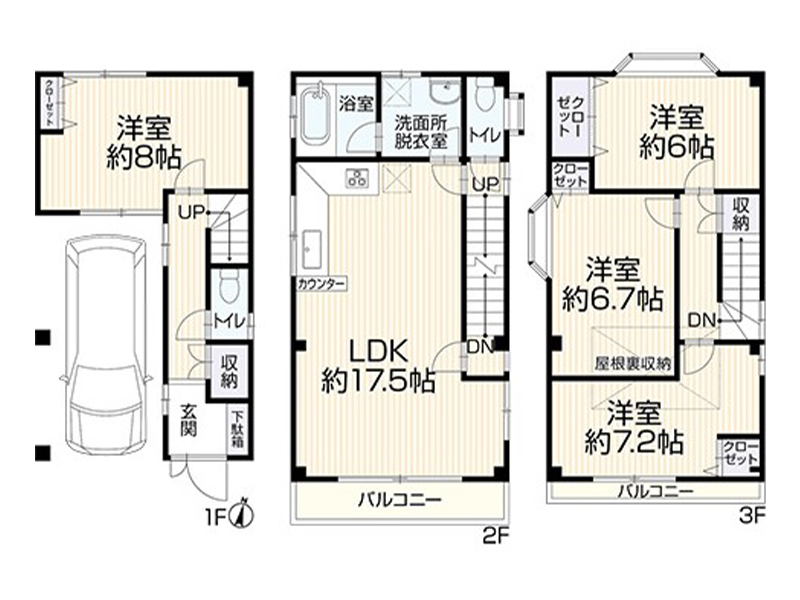 ■房产类型:新建一户建■销售价格: 3,280万日元■地址: 大阪市西淀川区竹島3丁目■交通: JR東西線「加島」歩1分■土地面积: 45.15㎡■建物面积: 89.32㎡■格局: 4LDK