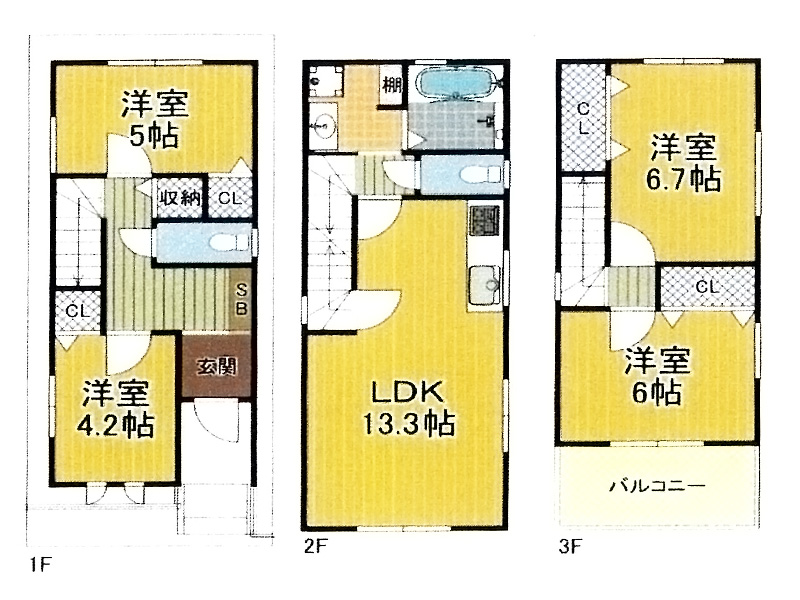 ■房产类型:新建一户建■销售价格: 3,680万日元■地址: 大阪市西淀川区姫里2丁目■交通:阪神本線「姫島」歩5分■土地面积: 53.75㎡■建物面积: 82.59㎡■格局: 3LDK