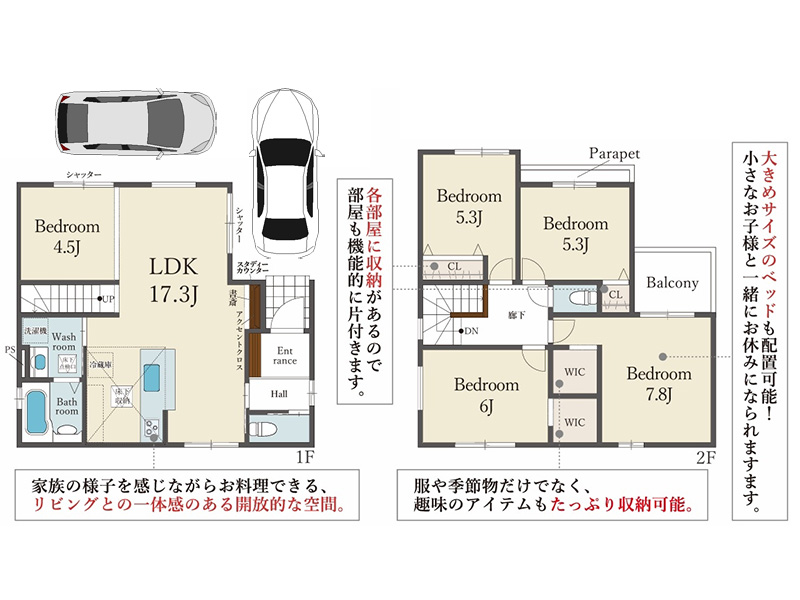 新建户建,超宽客厅+大型衣帽间,超市步行圈内,停车位2台